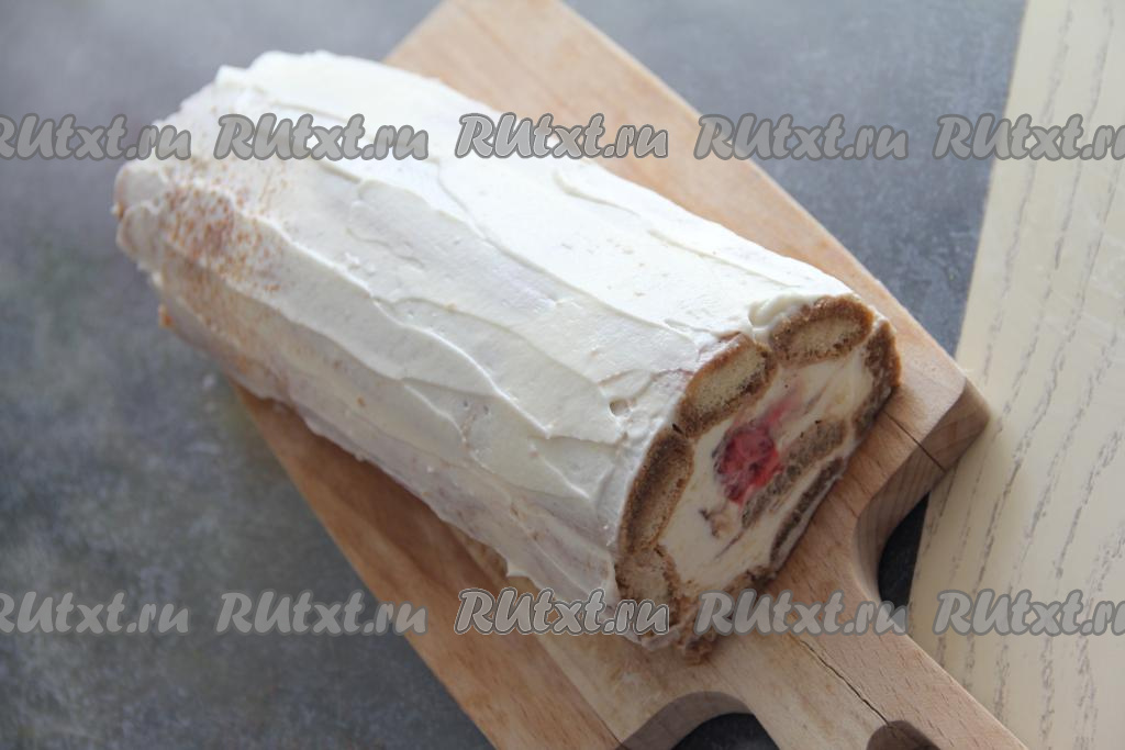 Предлагаю приготовить к чаю нежный, в меру сладкий тирамису с маскарпоне и малиной. Ягоды прекрасно сочетаются с печеньем "Савоярди" и кремом из маскарпоне и взбитых сливок. Тирамису получается очень вкусным и ароматным. Его можно выложить слоями, а я решила сформировать его в виде рулета, поэтому десерт смотрится достаточно эффектно. Всем советую попробовать!