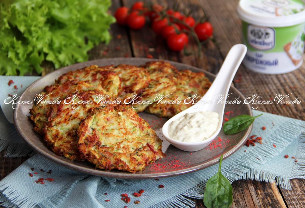 Вкусные, нежные, аппетитные кабачковые оладьи, приготовленные с беконом, подать к столу с любимым соусом. Я предпочитаю есть их со сметаной.