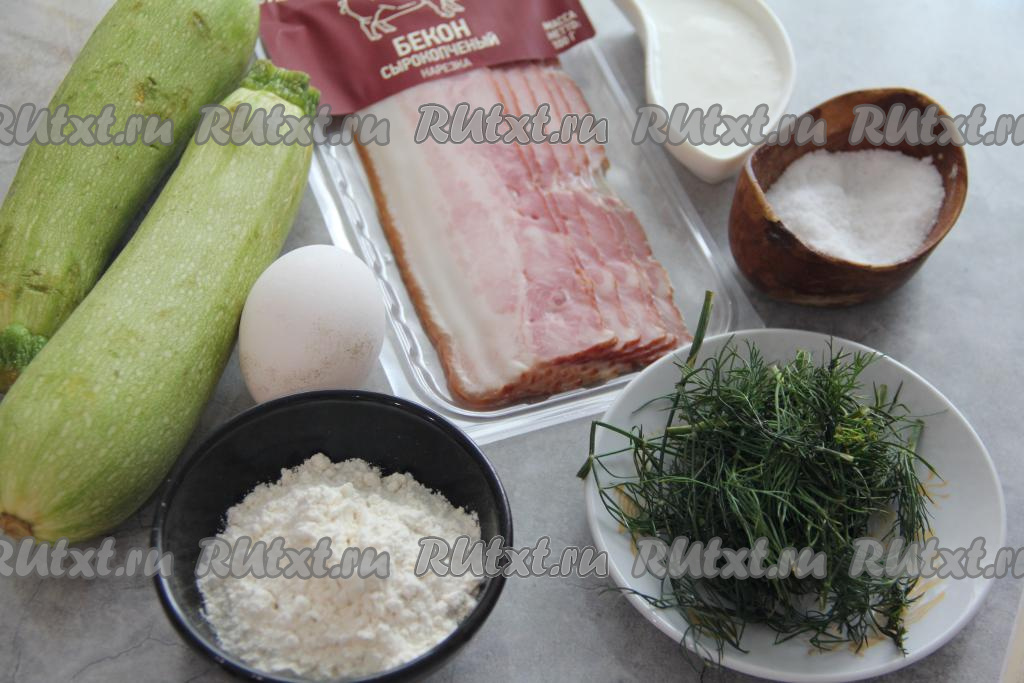 Оладьи из кабачков - достаточно популярное блюдо. Вариантов приготовления их немало. В этот раз предлагаю пожарить на сковороде сытные, нежные, очень вкусные кабачковые оладьи с добавлением бекона. Подать их можно и тёплыми, и остывшими, дополнив сметаной или вашим любимым соусом.