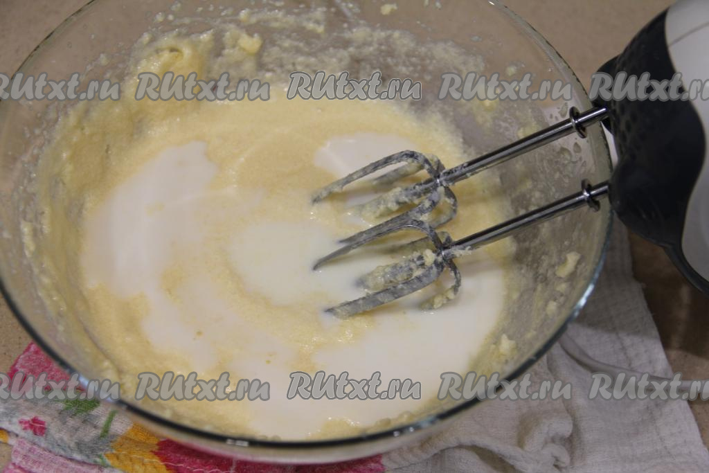 Затем влить молоко и взбить до однородности.