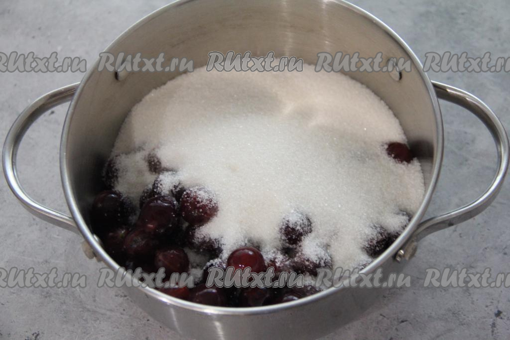 В кастрюлю всыпать ягоды крыжовника и сахар.