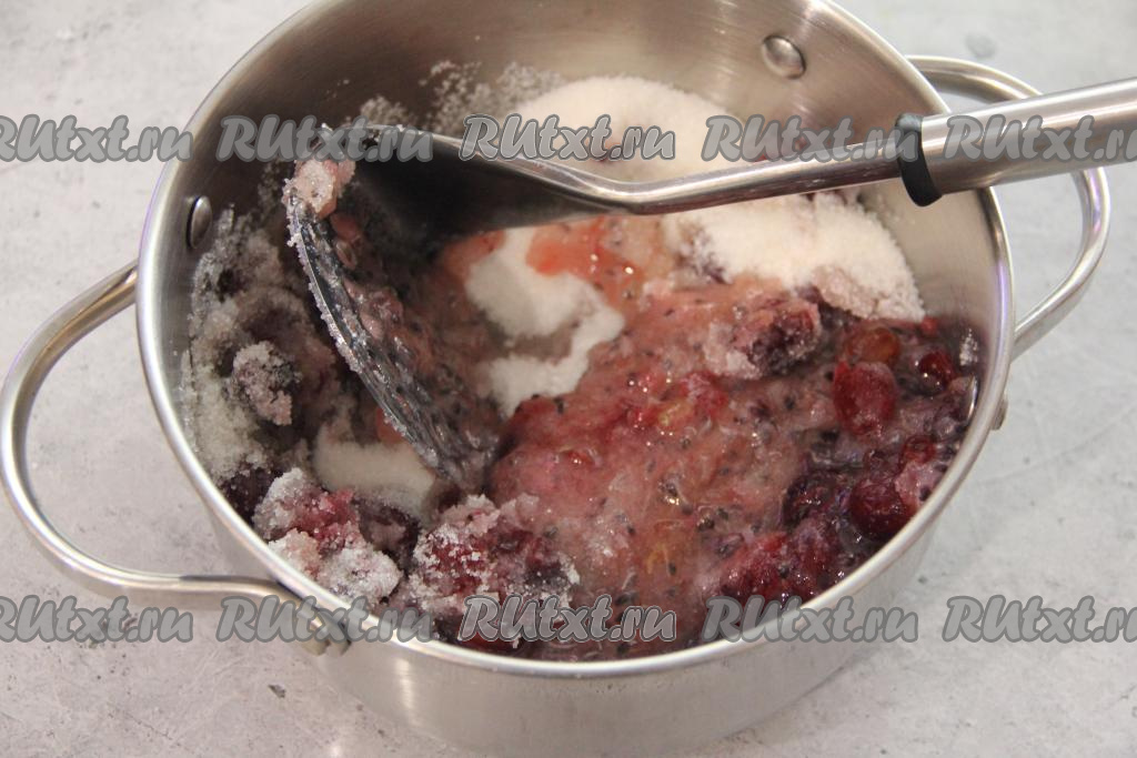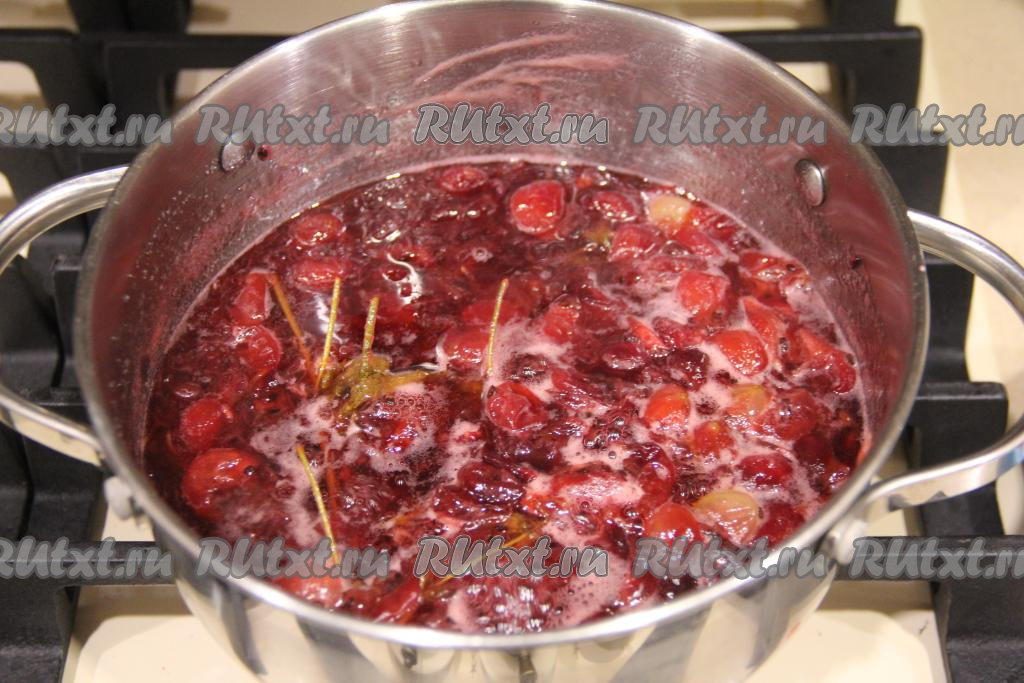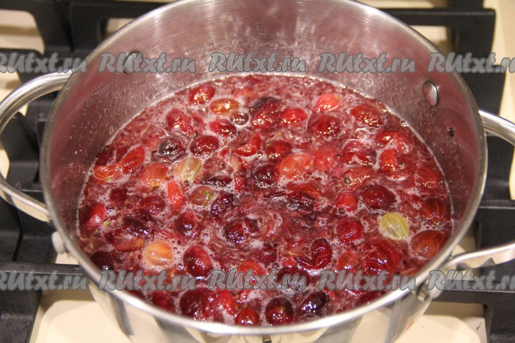 Поставить кастрюлю на средний огонь и, периодически перемешивая, довести варенье до кипения. После закипания снять пенку.