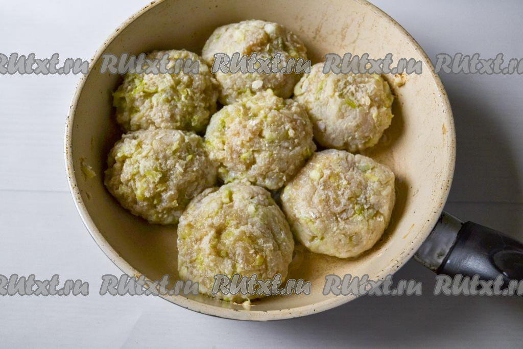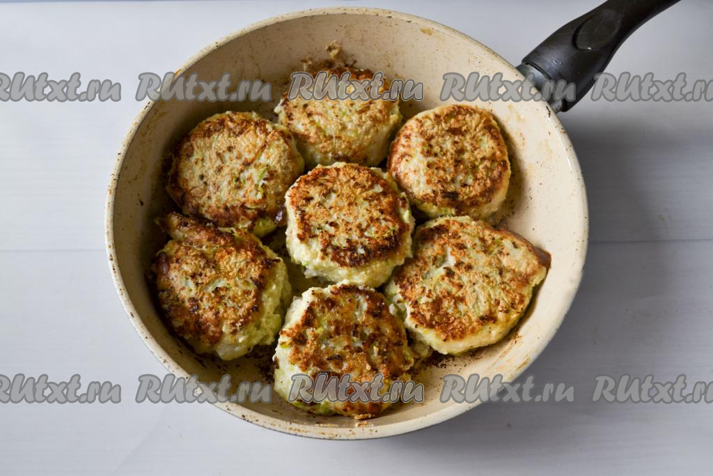 Котлеты из щуки с кабачком обжаривайте на сильном огне до румяности с двух сторон (примерно по 2-3 минуты с каждой стороны), затем сделайте огонь минимальным и под крышкой пропарьте котлеты до готовности в течение 15 минут. За это время нужно 1-2 раза перевернуть котлеты, чтобы они равномерно прожарились.