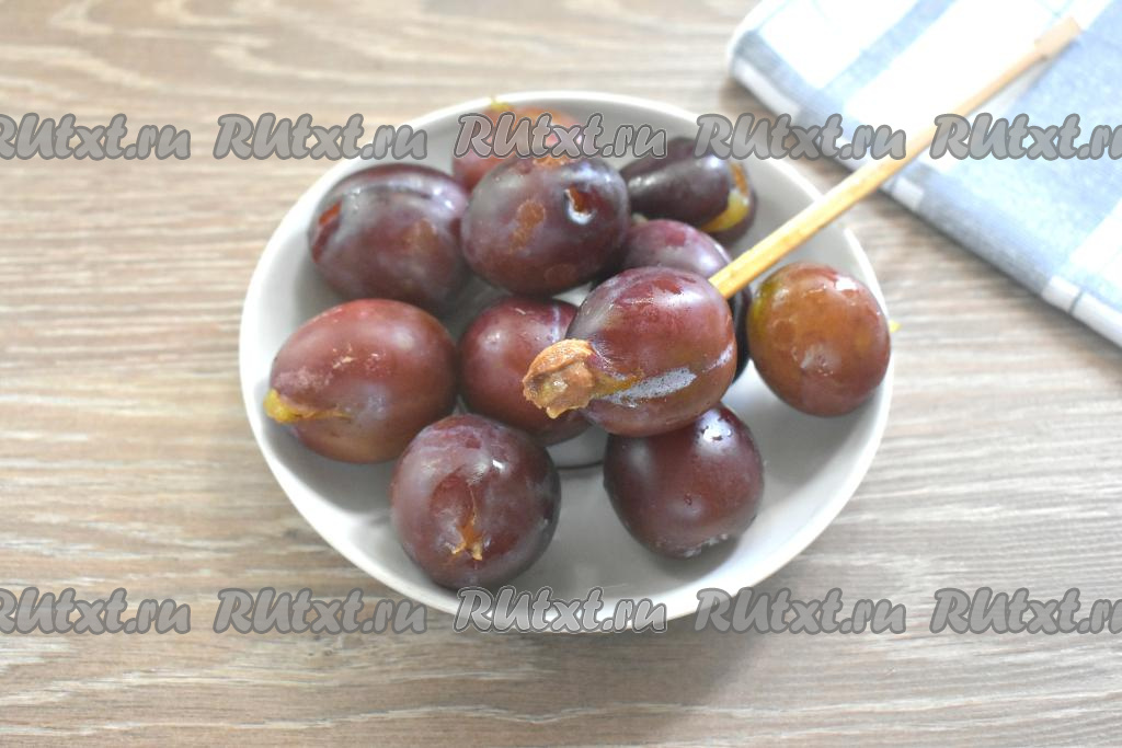 Целые, неиспорченные сливы промываем под проточной водой. Заготовить сливу в сиропе я решила целиком, но при этом удалив косточки с помощью палочки для суши. Если у вас сливы слишком жёсткие, тогда просто разрежьте их пополам и удалите косточки.