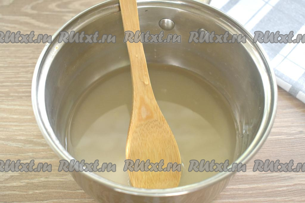 После того как банка со сливами, залитыми кипятком, постоит 15 минут, аккуратно сливаем воду из банки в кастрюлю с сахаром. Перемешиваем воду с сахаром, ставим на огонь, а после закипания провариваем получившийся сироп минуты 2-3 на небольшом огне. В процессе варки сироп перемешиваем лопаточкой (или ложкой), сахар должен полностью раствориться.