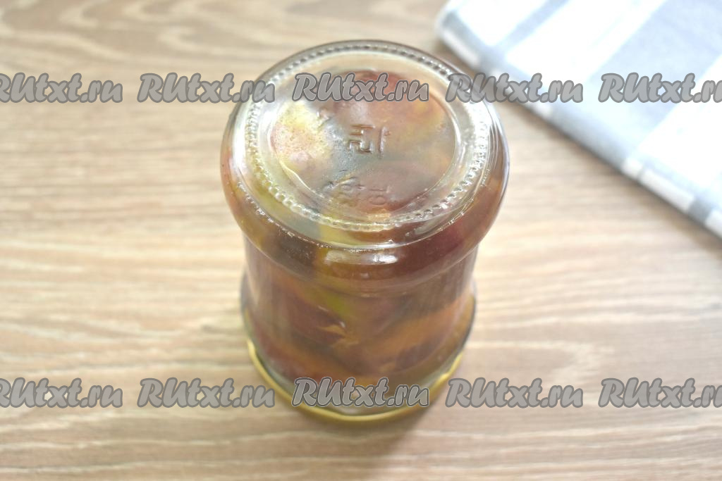 Получившийся горячий сироп вливаем в банку со сливами, плотно закручиваем (или закатываем) баночку крышкой, проверяем на герметичность. Ставим банку со сливами в сиропе на крышку, накрываем тёплым полотенцем, оставляем примерно на сутки (до полного остывания), а затем убираем на хранение. Эту заготовку лучше всего хранить в прохладном месте.