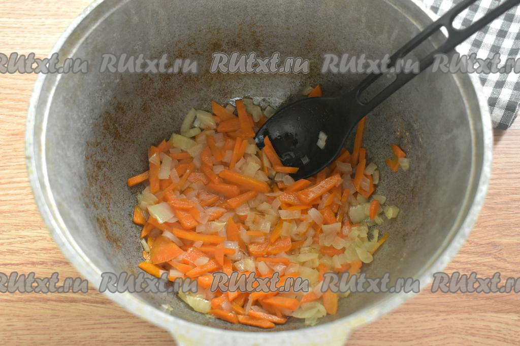 Обжариваем овощи на среднем огне 5-6 минут (до мягкости моркови), иногда помешивая.