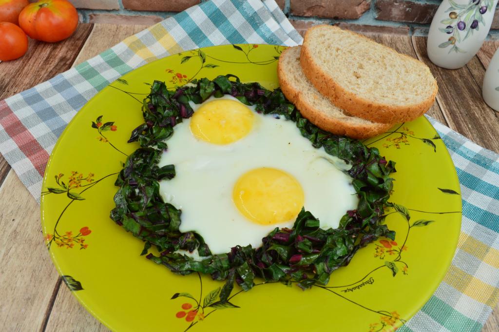 Яичница со свекольной ботвой