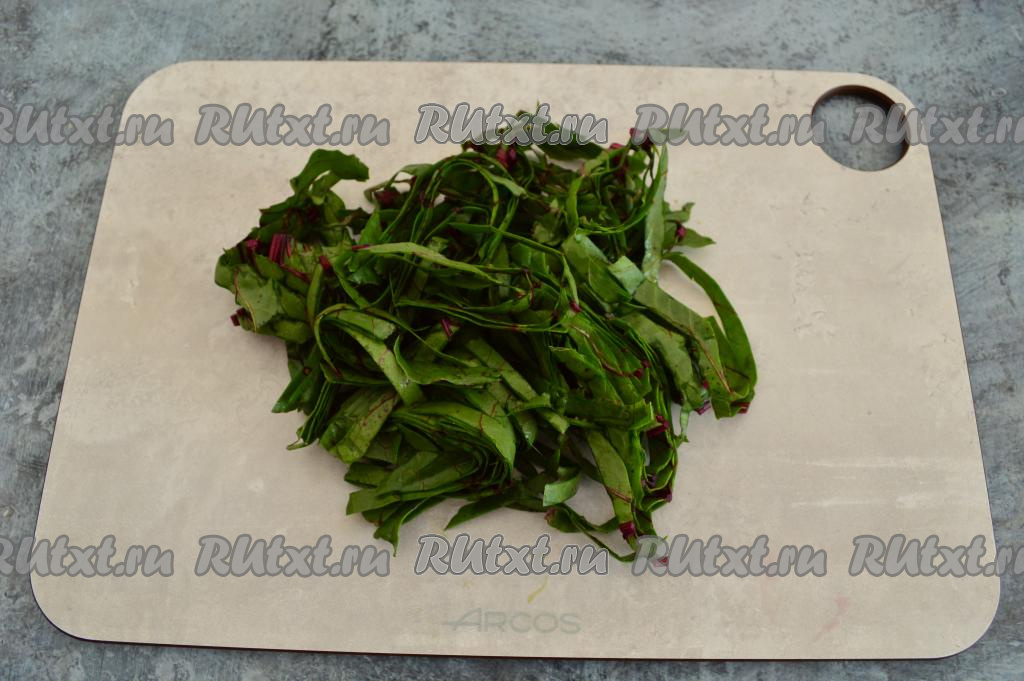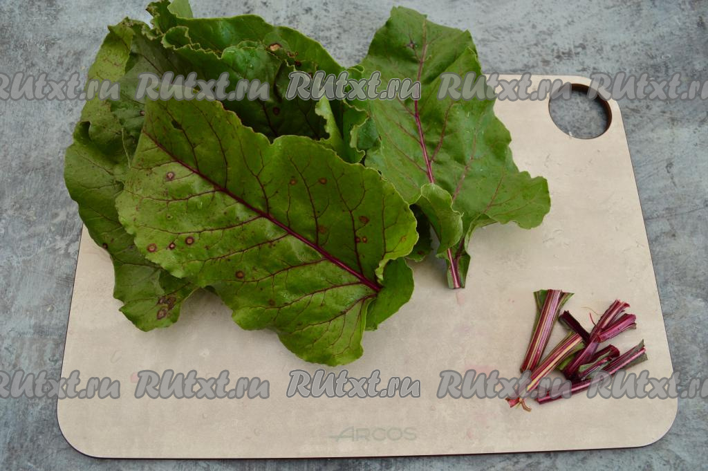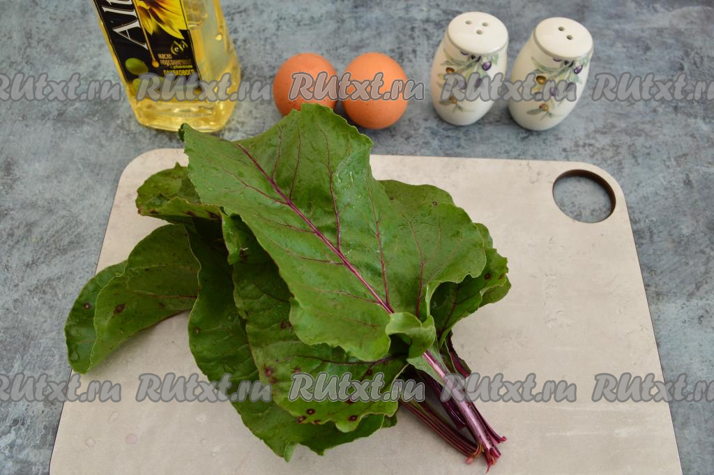 Подготовить продукты. Свекольные листья промыть водой и немного обсушить.
