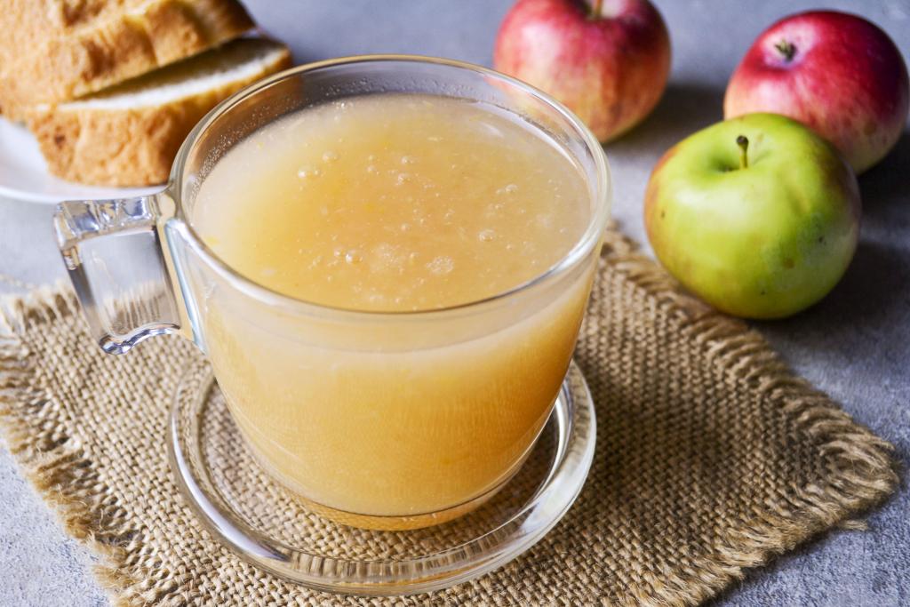 Очень вкусный, в меру густой кисель, приготовленный из свежих яблок и крахмала, можно подавать к столу горячим или охлаждённым.