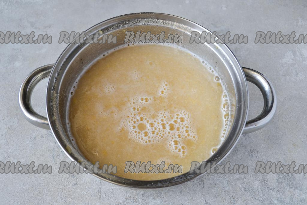 Когда яблоки станут мягкими, снимите кастрюлю с огня. Погружным блендером измельчите мягкие яблоки в отваре до однородности и снова поставьте кастрюлю на огонь, доведите до кипения.
