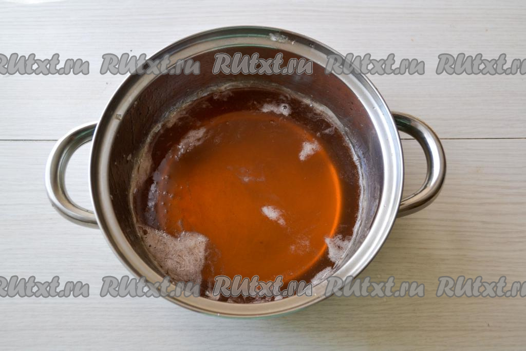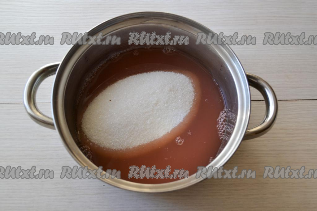 Всыпьте в отвар сахар, тщательно перемешайте и поставьте кастрюлю на огонь.