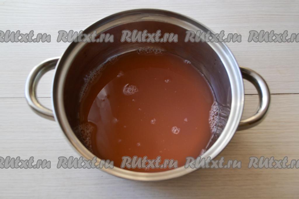 Перелейте яблочный отвар в кастрюлю с толстым дном.
