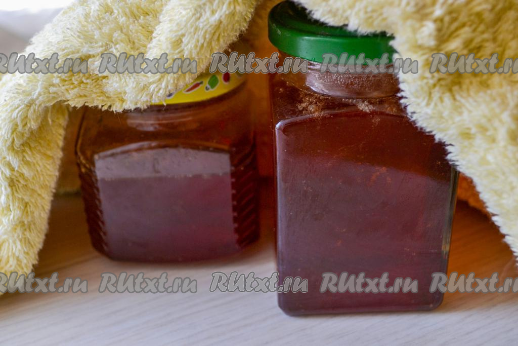 Закрутите баночки с яблочным сиропом крышками, укутайте в плед (банки не нужно переворачивать), оставьте примерно на сутки (до полного остывания баночек).