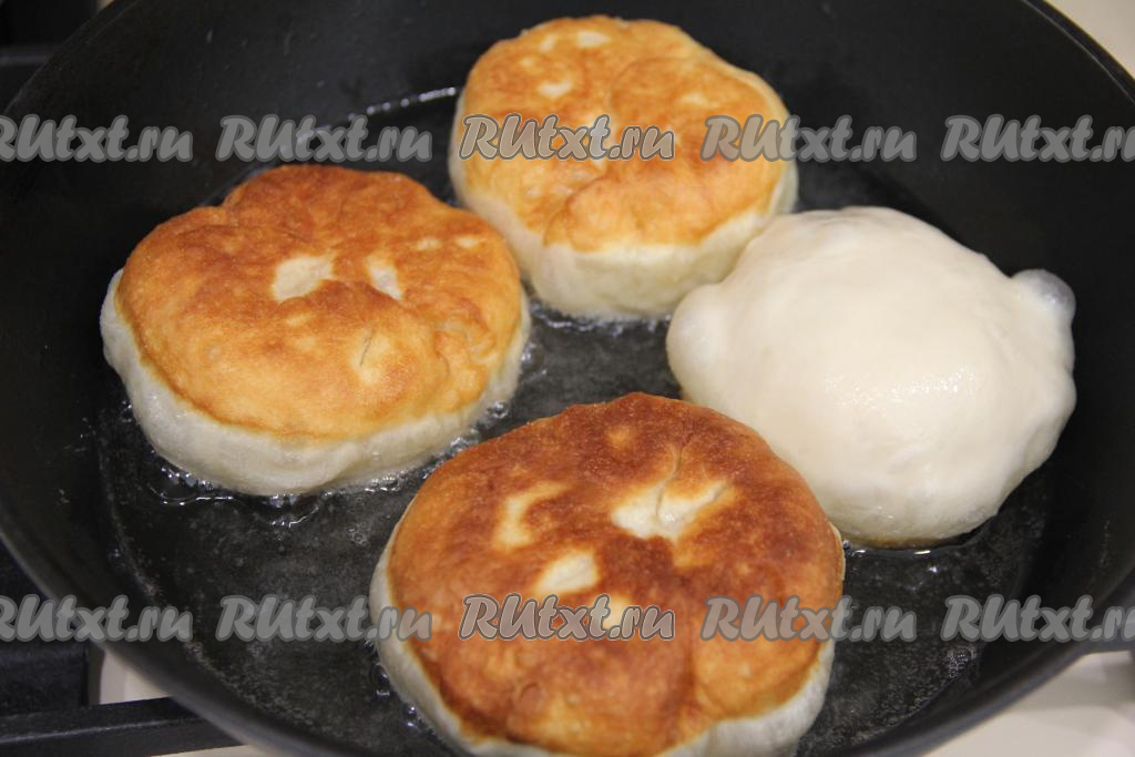 Жарить пирожки с ягодами до золотистого цвета с двух сторон на среднем огне.