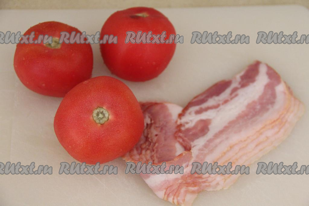 Помидоры вымыть. Разделить бекон на полоски.