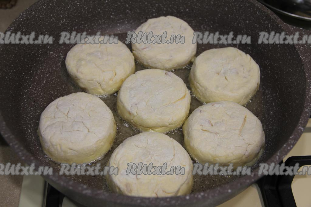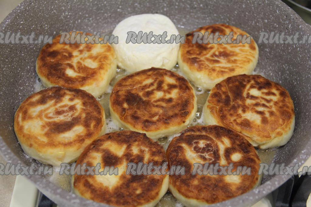 В сковороду влить растительное масло, хорошо разогреть, затем выложить сырники.