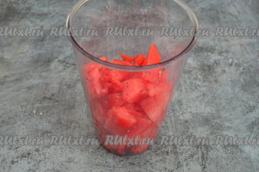 300 грамм очищенного арбуза выложить в чашу погружного блендера.