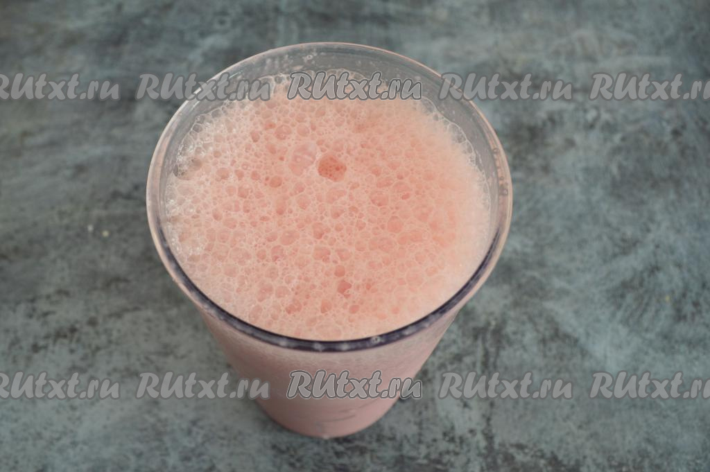 Погружным блендером пробить арбуз до получения однородного сока (на взбивание потребуется буквально 1 минута).