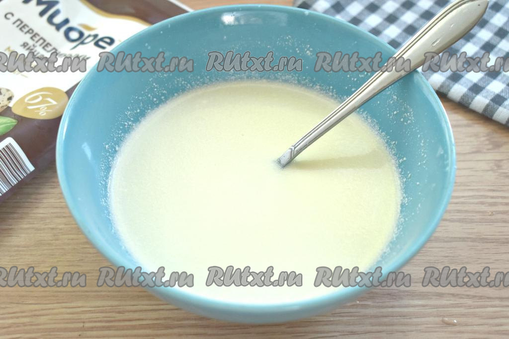 За это время подготовим сметанный соус, для этого в небольшую миску выкладываем сметану, вливаем тёплую кипячёную воду, солим и тщательно перемешиваем.