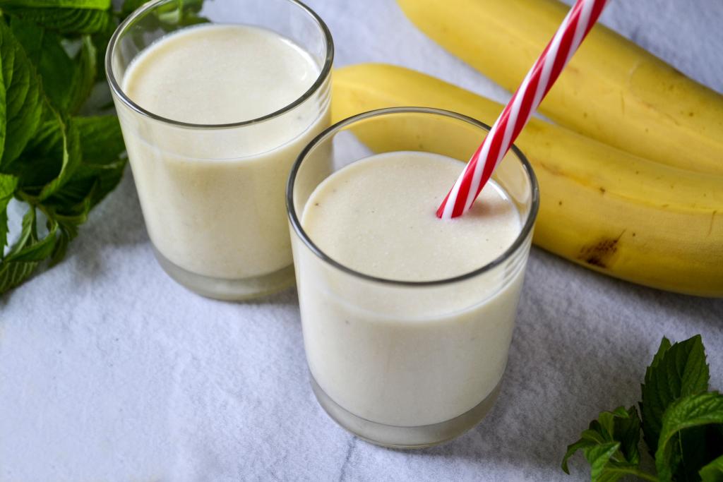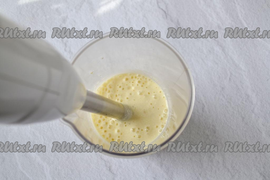Погружным блендером измельчите все продукты до получения однородной консистенции (ориентировочно в течение 1-2 минут). На этом этапе можно попробовать творожно-банановый смузи на вкус, если вам не будет хватать сладости, тогда можете добавить ещё немного мёда и пробить блендером до однородности.