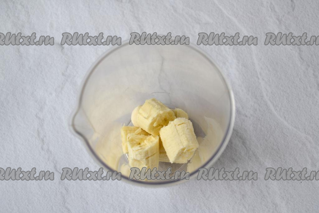 Банан очистите от кожуры, поломайте на кусочки, выложите в чашу для погружного блендера. Банан лучше выбирать спелый или даже немного переспелый.