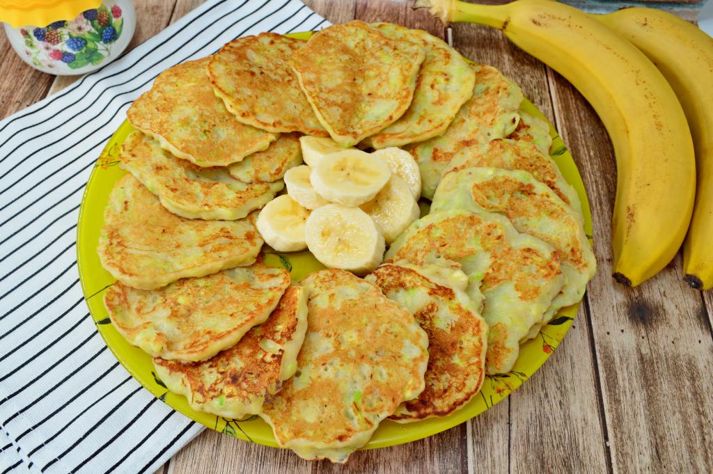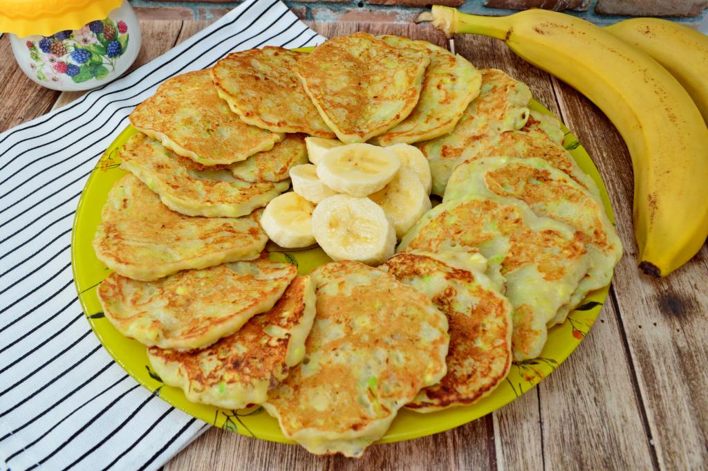 Вкуснейшие, мягкие, в меру сладкие оладьи, приготовленные из кабачков и банана, лучше подавать к столу с пылу с жару, хотя мне они нравятся и полностью остывшими.