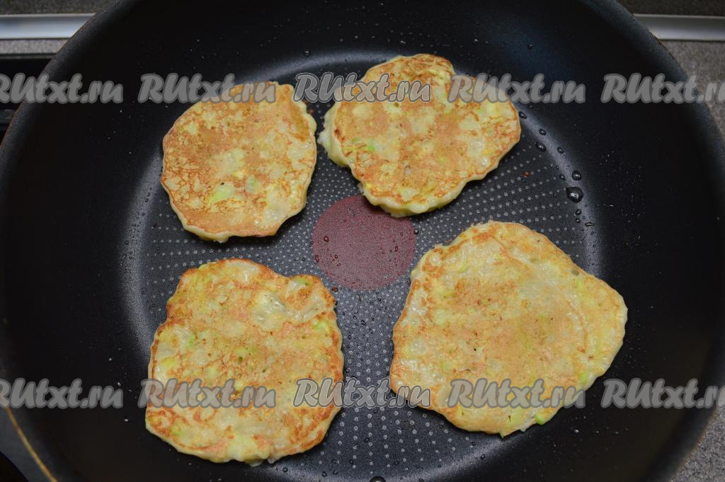 Жарить оладушки по 2 минуты с каждой стороны (до золотистого цвета с двух сторон) на среднем огне. Затем перекладывать на тарелку.
