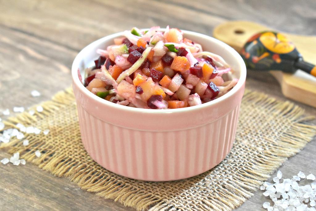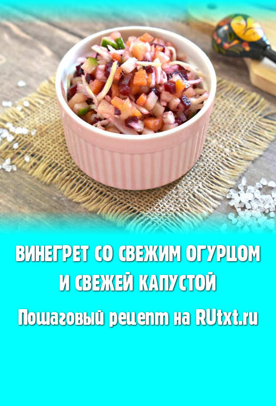 Винегрет - это яркое, вкусное и сытное блюдо. Существуют различные варианты его приготовления. В этот раз решила сделать винегрет со свежим огурцом и свежей капустой. Такой винегрет особенно актуален летом и ранней осенью, когда мы предпочитаем готовить блюда со свежими овощами. Этот аппетитный винегрет прекрасно насыщает, неизменно радует яркими красками и отменным вкусом, попробуйте!