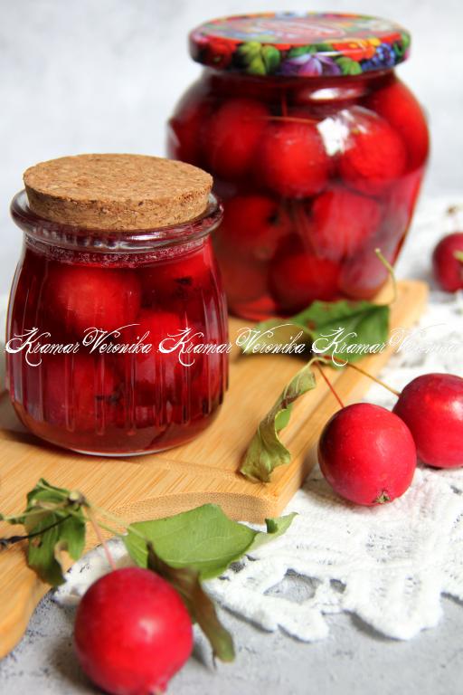 В этом году приготовила варенье из райских яблок с хвостиками. Варенье из разряда "Пятиминутка", варится в три приёма по 5 минут. Варенье получилось очень красивым, с прозрачным сиропом. Таким сиропом можно полить блинчики или оладушки. Райские яблочки можно использовать для украшения тортов или кексов.