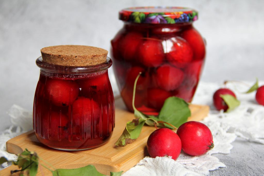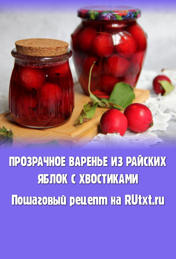 Перевернуть баночки с вареньем из райских яблок вверх дном, укутать в одеяло, оставить до полного остывания, а затем переставить на хранение в прохладное место. Зимой это прозрачное варенье можно подать к блинам, сырникам, оладьям, а аппетитные яблоки с хвостиками отлично украсят различную выпечку.