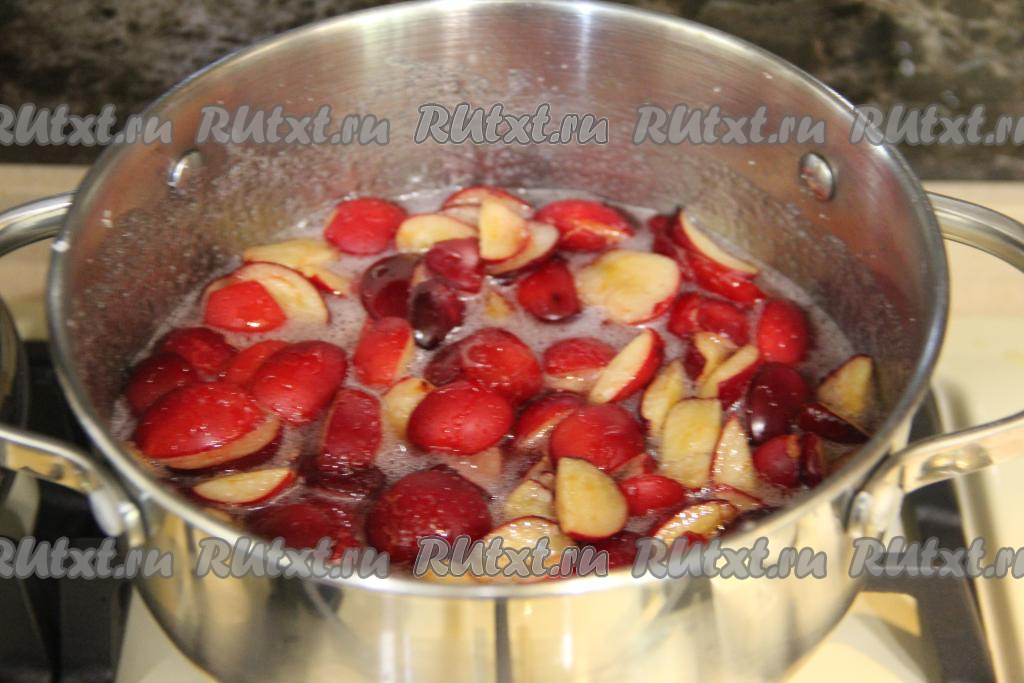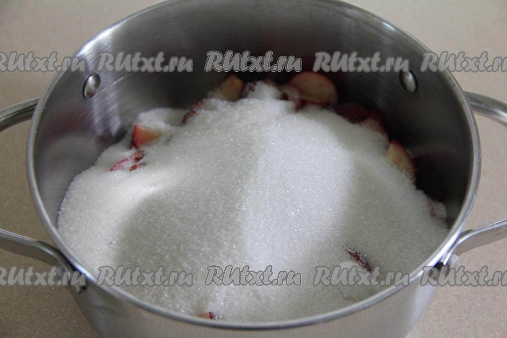 Перемешать яблоки с сахаром и оставить на 2 часа при комнатной температуре, накрыв кастрюлю крышкой.