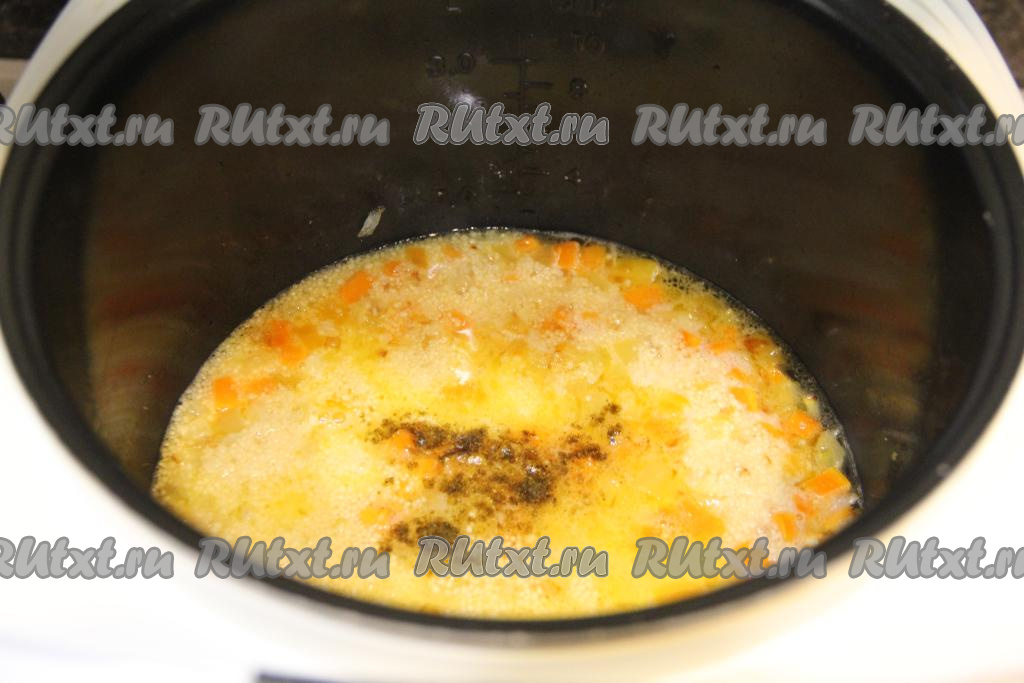 Обжарить овощи до полной готовности (минут 10-13), не забывая их иногда помешивать и не закрывая мультиварку.
