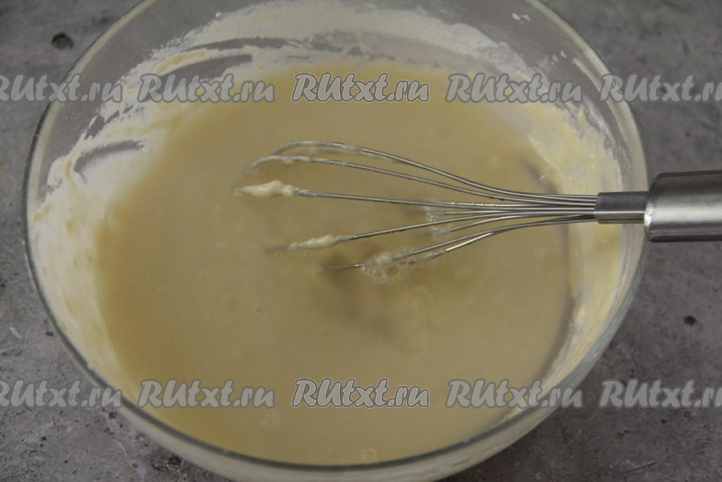 Влить ещё 150 миллилитров горячей воды, перемешать венчиком.