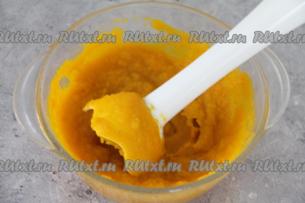Дать запечённой тыкве немного остыть. А затем пробить тыкву погружным блендером до однородности.