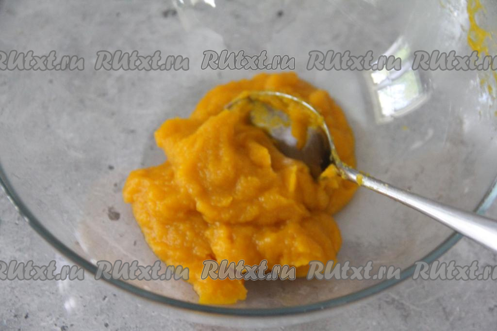 Добавить к тыквенному пюре сахар, соль и ванилин, перемешать.