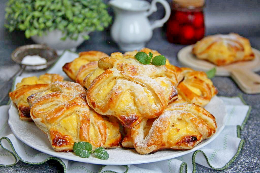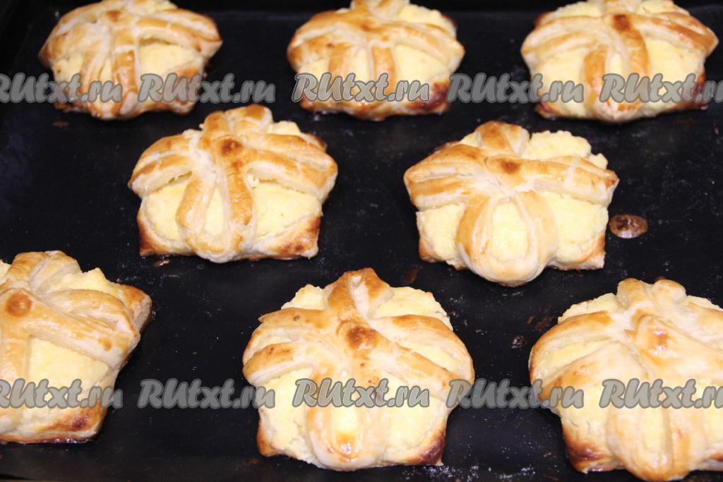 Перед подачей аппетитнейшие, ароматные слойки с нежной начинкой из творога и лимона можно присыпать сахарной пудрой.