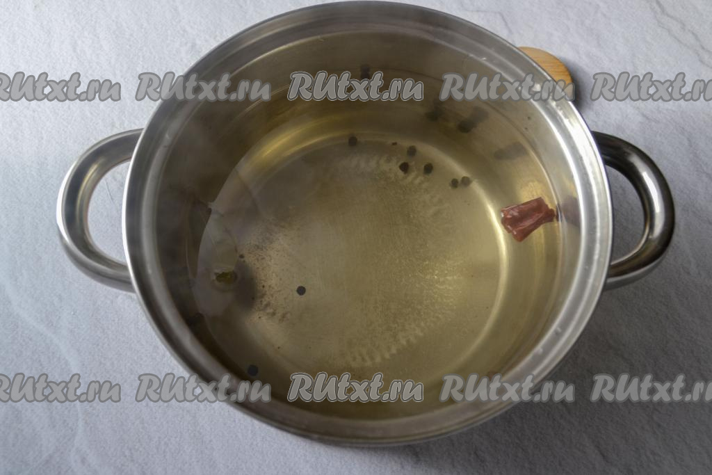 Влейте в кастрюлю литр воды, перемешайте, поставьте на огонь. После того как вода закипит, уменьшите огонь и проварите маринад 2-3 минуты, чтобы сахар и соль полностью растворились. Снимите кастрюлю с огня, влейте уксусную эссенцию и перемешайте.