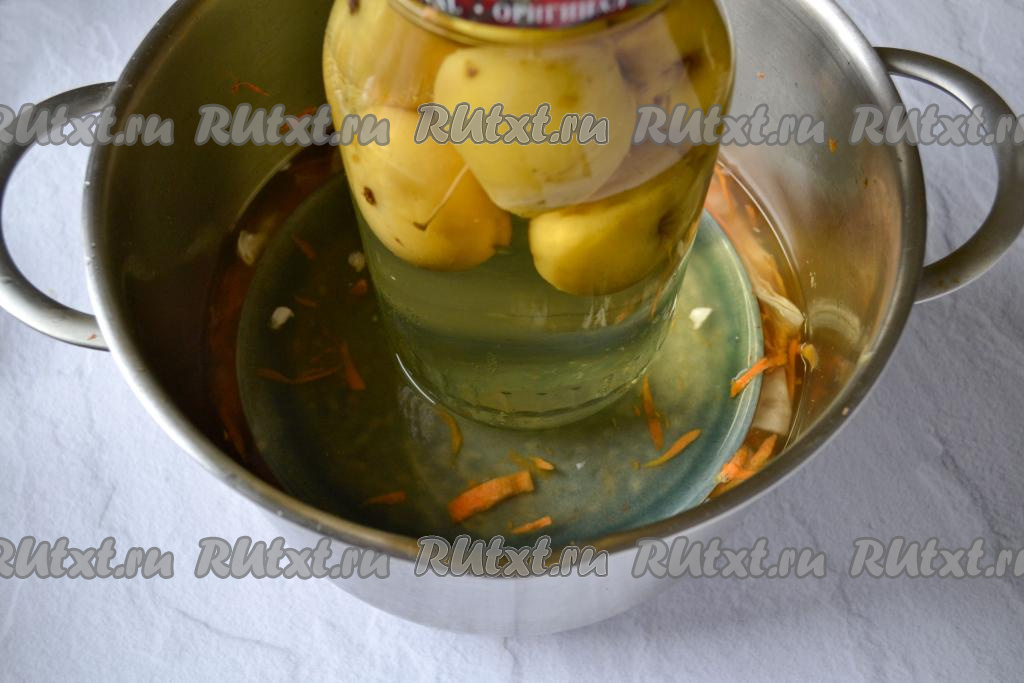 Аккуратно влейте горячий маринад в кастрюлю, стараясь попасть на всю поверхность капусты.