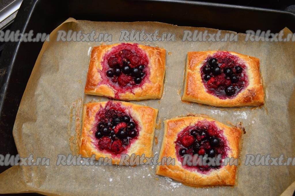Слойки с ягодами станут приятного золотистого оттенка и немного увеличатся в размерах.