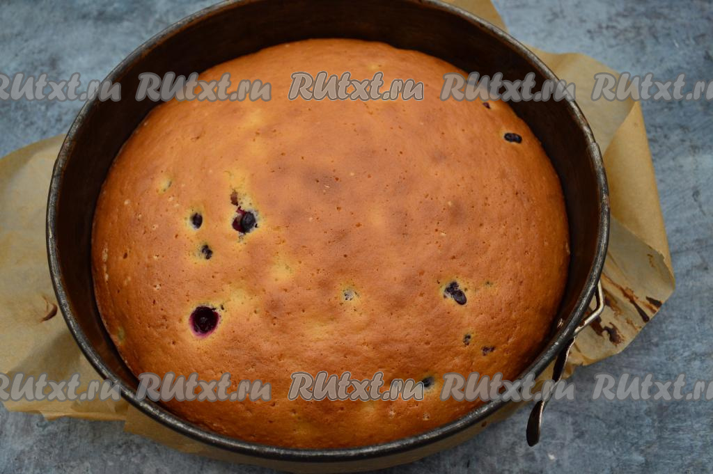 Поставить форму с тестом в хорошо прогревшуюся духовку. Выпекать пирог с чёрной смородиной минут 45-50 при температуре 180 градусов. Готовность можно проверить сухой деревянной шпажкой, если после прокола пирога она осталась сухой, значит выпечка готова. Также готовый пирог будет иметь приятный золотистый оттенок.