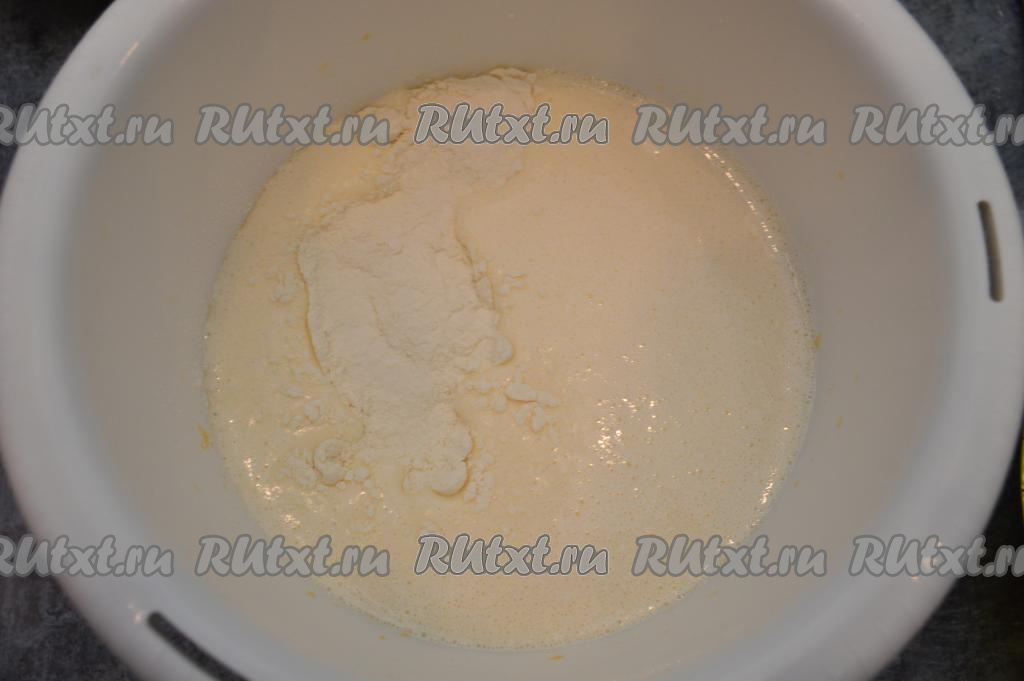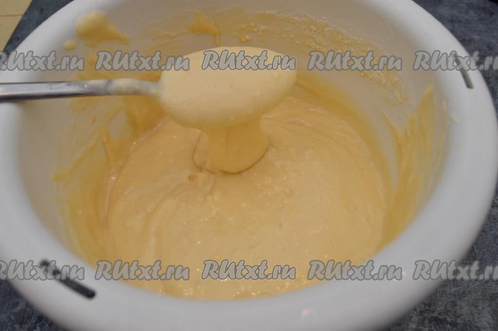 При добавлении муки нужно ориентироваться на густоту замешиваемого теста, а не на количество муки. Тесто должно получиться однородным, напоминающим сметану средней жирности, оно будет медленно сползать с ложки.
