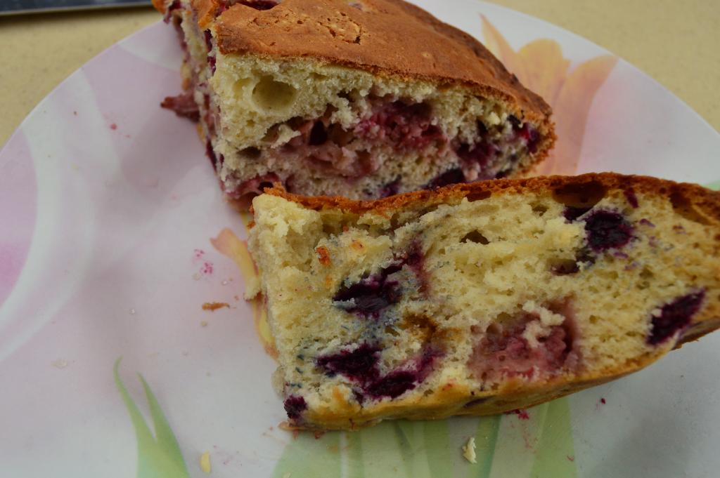 А затем аппетитный пирог, приготовленный на кефире с чёрной смородиной, можно нарезать на кусочки и угощаться. Эта домашняя выпечка вкусна и в тёплом, и в остывшем виде.