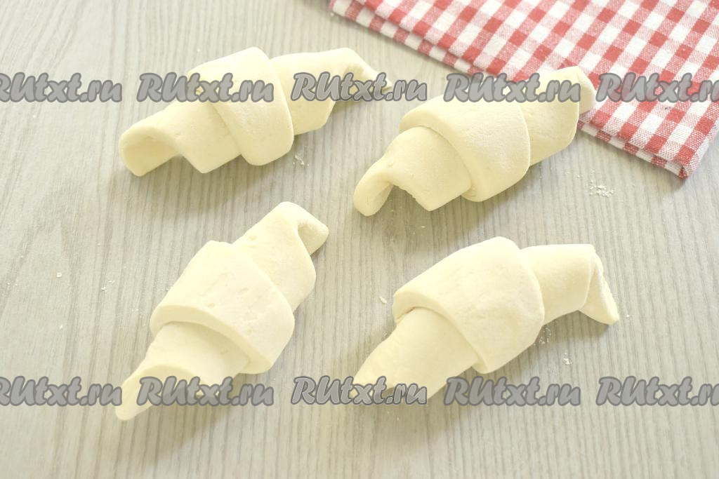 В центре основания каждого треугольника из теста делаем небольшой надрез, а углы слегка разводим в стороны, как на фото.