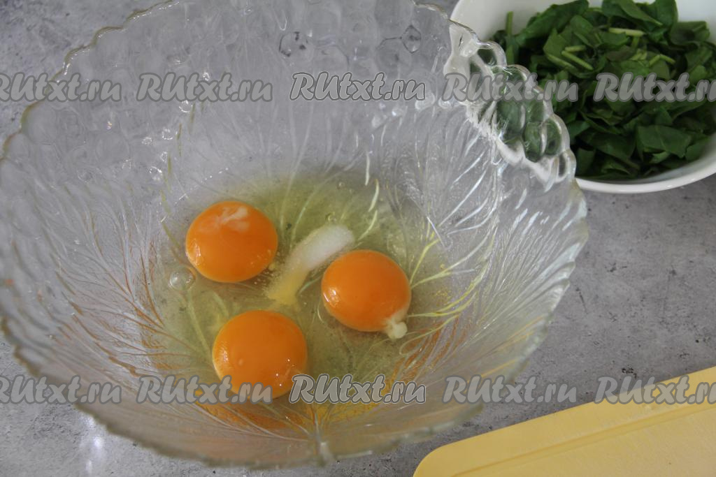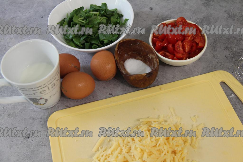 Для приготовления на сковороде омлета со шпинатом и помидорами потребуется: