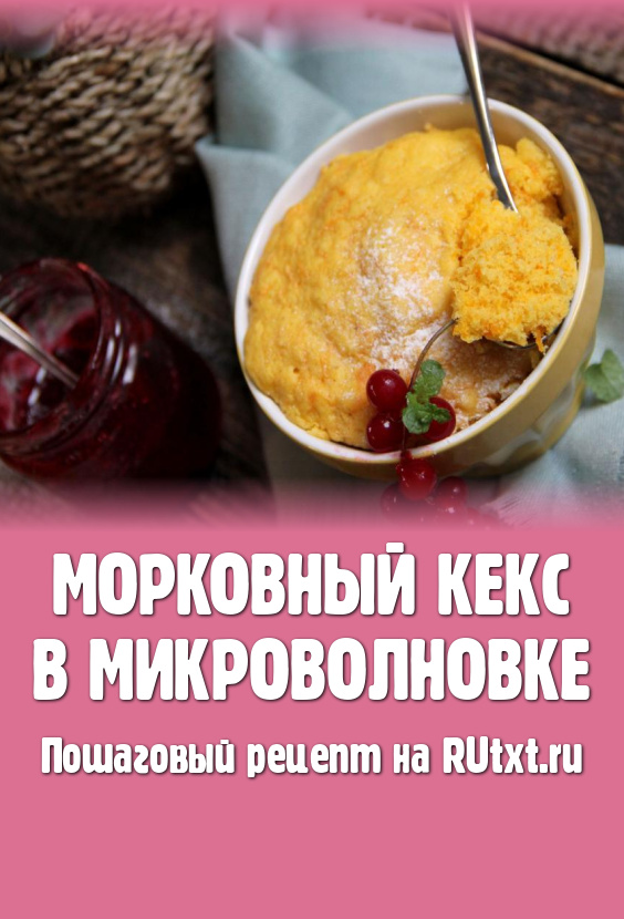 Перемешать морковное тесто вилкой, оно получится в меру густым и вязким. В форму (я выпекала в керамической форме диаметром 13 сантиметров), смазанную маслом, выложить тесто, заполняя форму чуть больше, чем на половину. Поставить форму с тестом в микроволновку и выпекать кекс 5 минут при максимальной мощности (мощность моей микроволновки 850 Ватт).