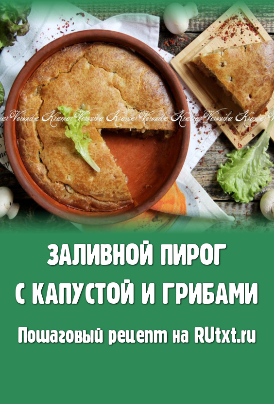 Готовый заливной пирог с капустой и грибами достать из духовки, слегка остудить, а затем нарезать на кусочки и подать к столу. Выпечка из теста, замешанного на кефире, получилась и вкусной, и ароматной, и нежной, она хороша и тёплой, и после полного остывания.