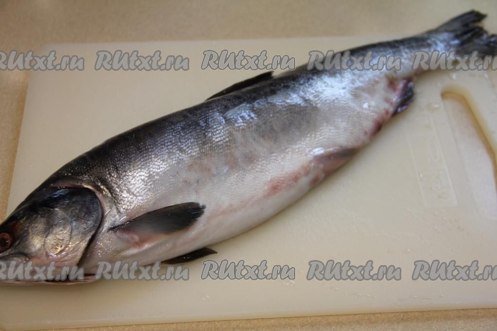 Подготовить рыбку, у меня горбуша была не потрошеная, замороженная. Полностью разморозить рыбу. Удалить внутренности, отрезать голову (голова рыбы для этого блюда нам не понадобится, из неё можно сварить отличный суп) и плавники, тщательно промыть водой.