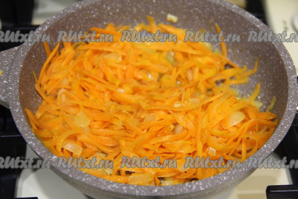 Обжаривать минут 5 (морковка должна стать мягкой), иногда помешивая.