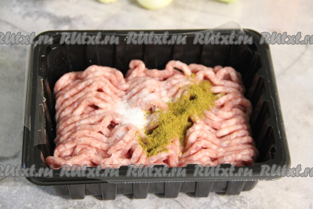 Фарш для приготовления фрикаделек можно взять покупной или приготовить в домашних условиях, пропустив небольшие кусочки мяса через мясорубку. В фарш добавить соль и специи, хорошо перемешать.